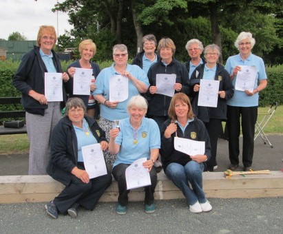 Incredibly after 3 games the three who had won all three games (seated above) all had the same points difference so we had to have a one boule shoot-off. The winner in the centre is showing off her small but perfect trophy. The other two took home medals and everyone received a Certificate of Attendance. More pictures in Gallery.
