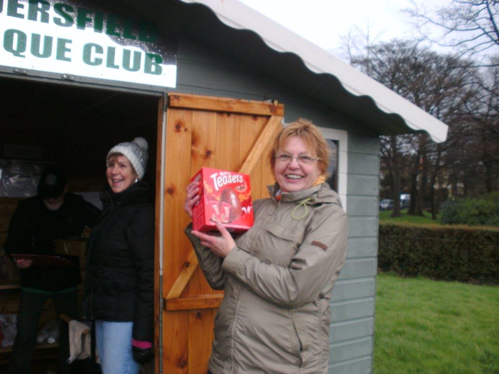 These are today’s winners Pat was 1st then Gertje 2nd then Barrie 3rd. They al won an Easter egg. We had 16 people attend on a very changeable day with sun, wind, rain and hail with even a bit of thunder thrown in.