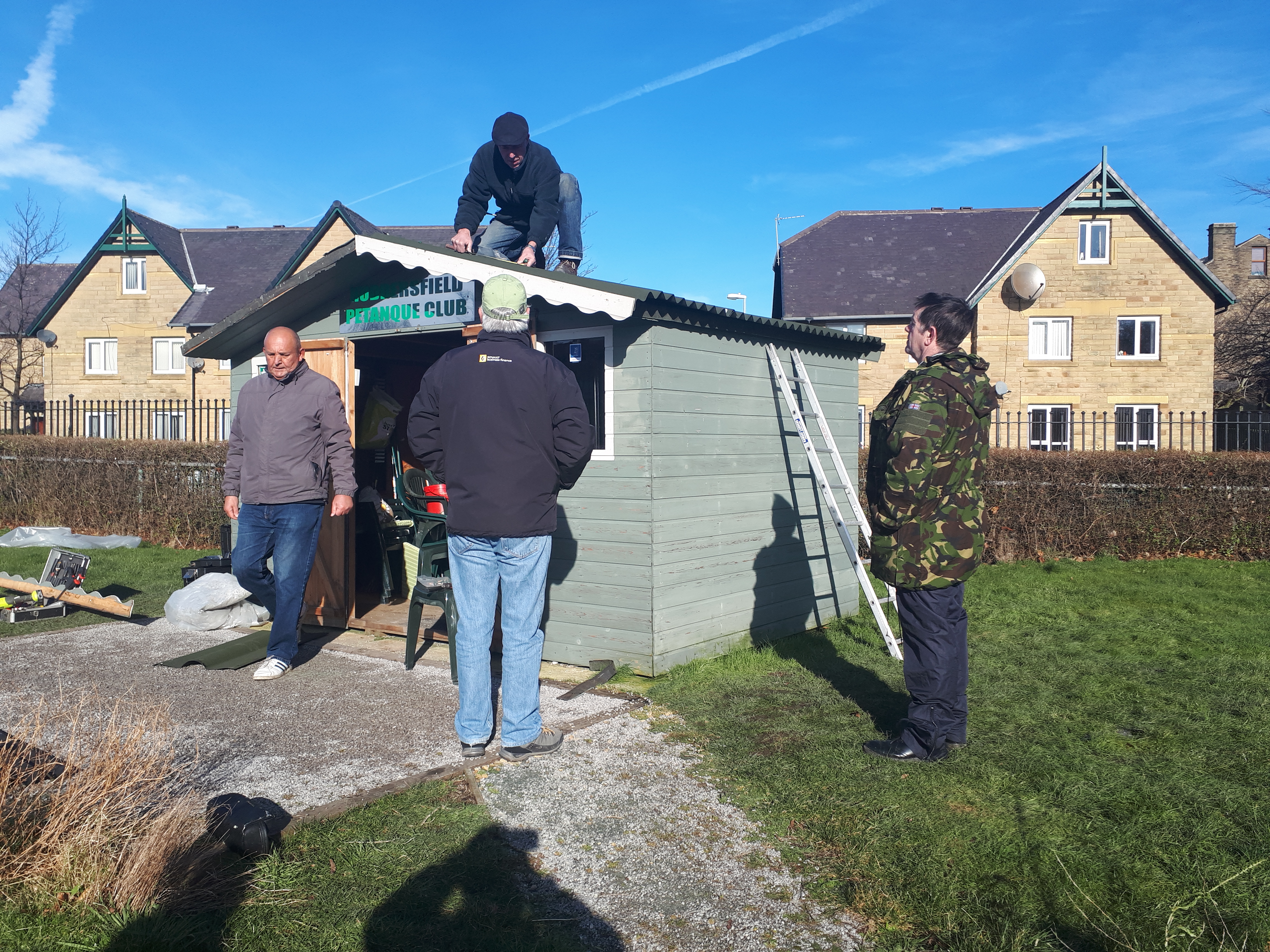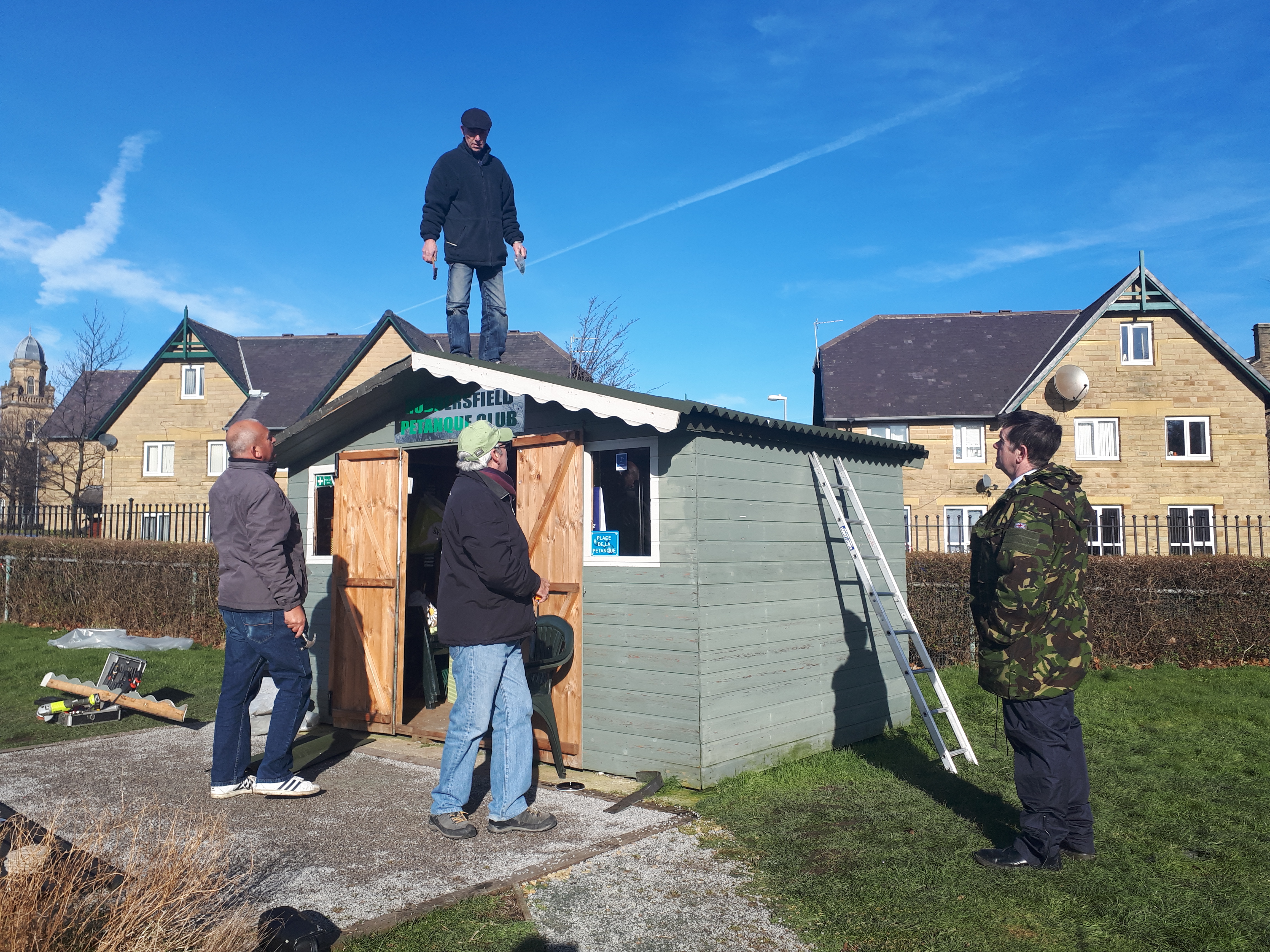 Despite being strapped together the roof continued to deteriorate thanks to Storm Dylan and Storm Eleanor and one day in January the committee decided that the roof had reached the end of its useful life. Action was needed. Quotes were received – one of them for more than the value of the shed but a DIY solution was preferred.