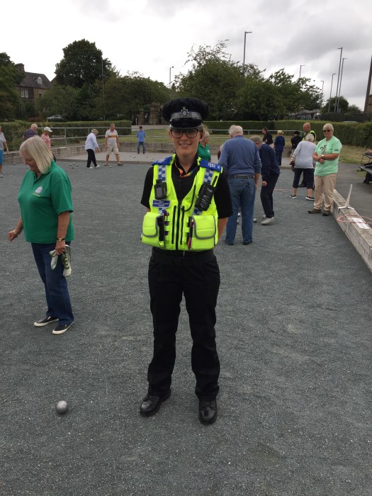 There were no cars near our terrain so they weren’t on Point Duty and they were not carrying any guns so there was no shooting (but they were beginners). We suggested a pétanque tournament for the Police federation and they seemed quite interested having had a Crown green event for officers recently. Watch this space.