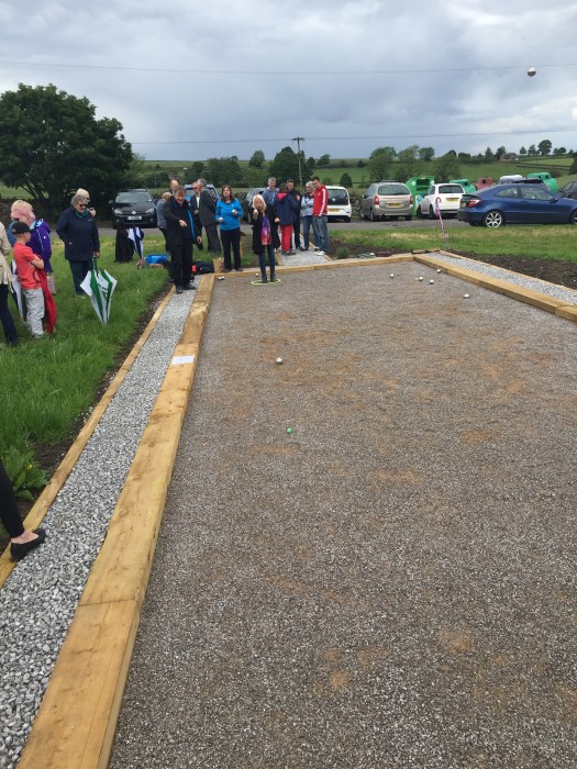 Sunday 9th saw an Open Day at the new Boules pitch in Thurstonland. Two members from Huddersfield called in to see how it turned out as we’d known it was being done but it’s taken longer than planned. It’s very well made with new wooden sleepers surrounding a 2 lane terrain with gravel path running around it.