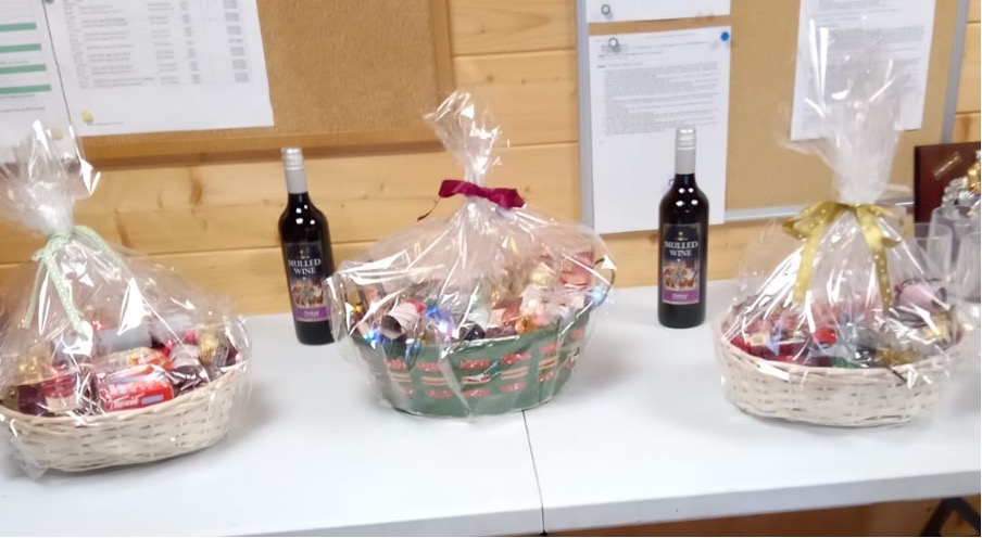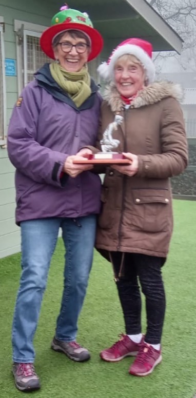 After the first round there were mince pies and mulled wine inside the clubhouse and the raffle for Xmas baskets was drawn. Winners were Maureen, Kathy & Margaret and the final amount raised this year for our chosen charity – Age UK – was over £350.