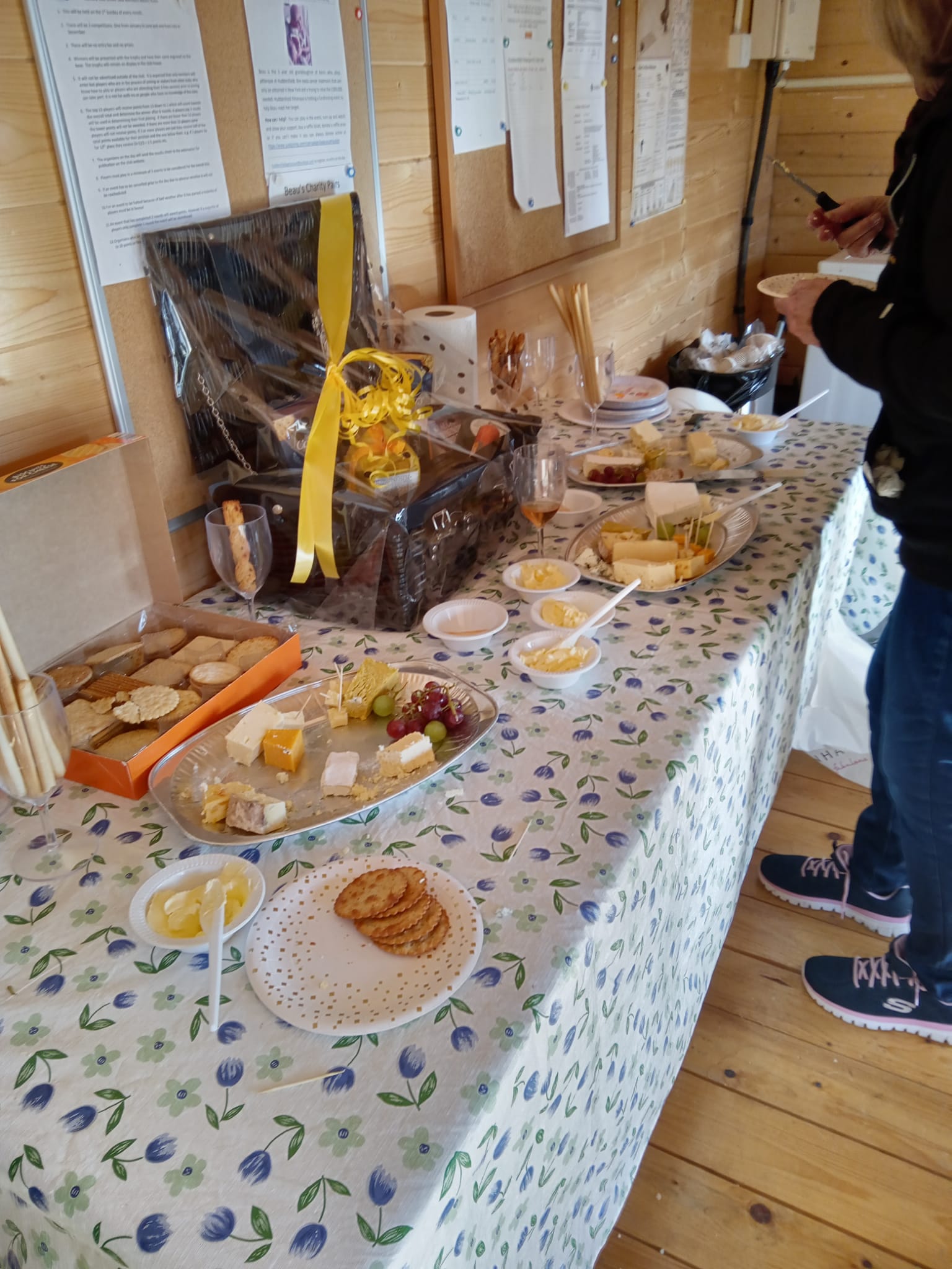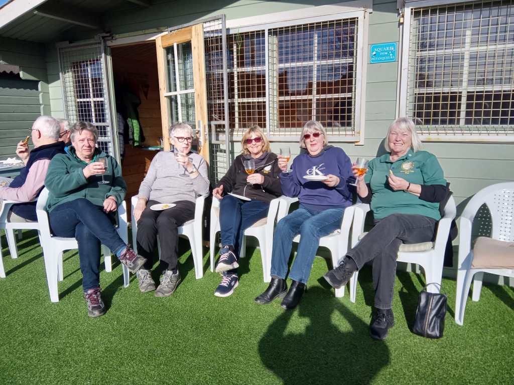 1st March was the meteorological first day of Spring. And it was nice sunny day. The plastic chairs were out and members enjoyed a casual melee where we didn’t keep scores and also had a cheese and wine picnic after the first round. It was so warm that most sat outside in the sun for some time. Then we drew the raffle for the Hamper that was going to raise money for Beau’s Campaign and this brought in a magnificent £150.