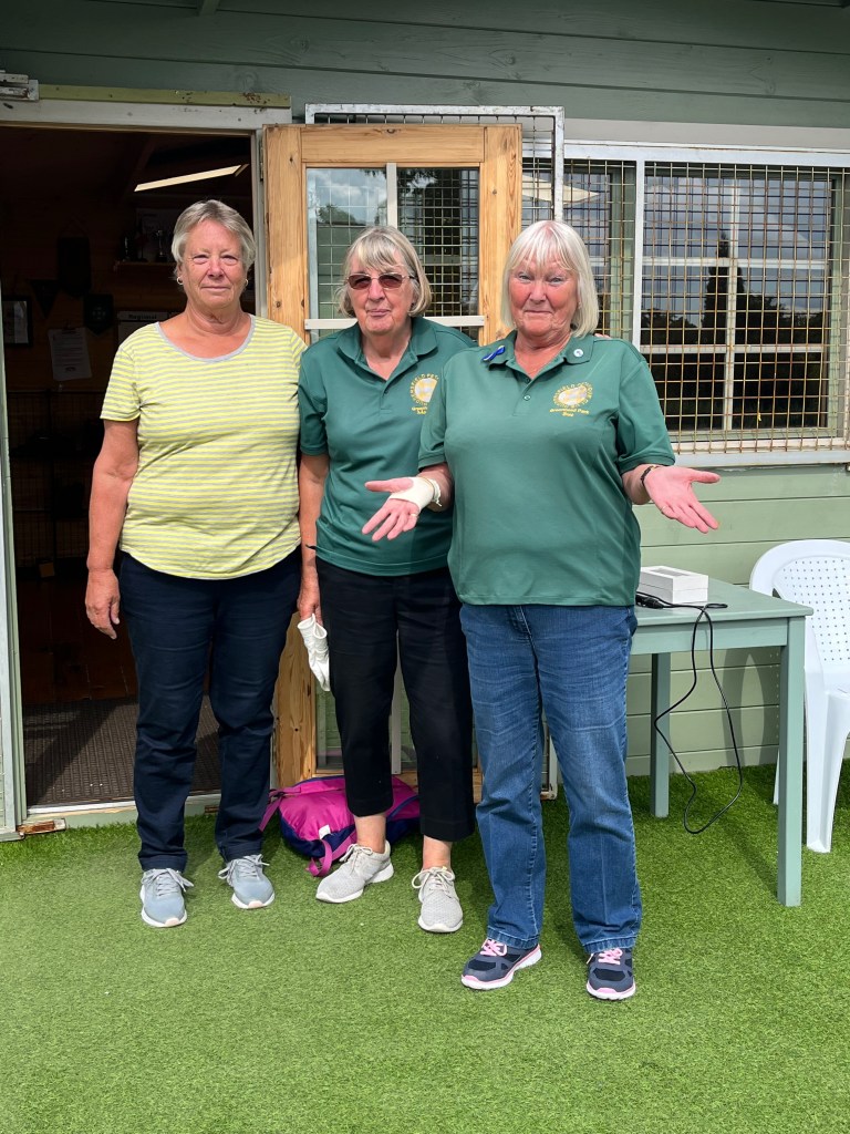 Thursday 30th June and a large attendance for the club Triples. 11 teams played 3 rounds and at the end there were only 2 teams with 3 wins. Ever Hopeful (pictured above) had a points difference of 13 but YAP (Yvonne, Alasdair & Phil) had just 9.