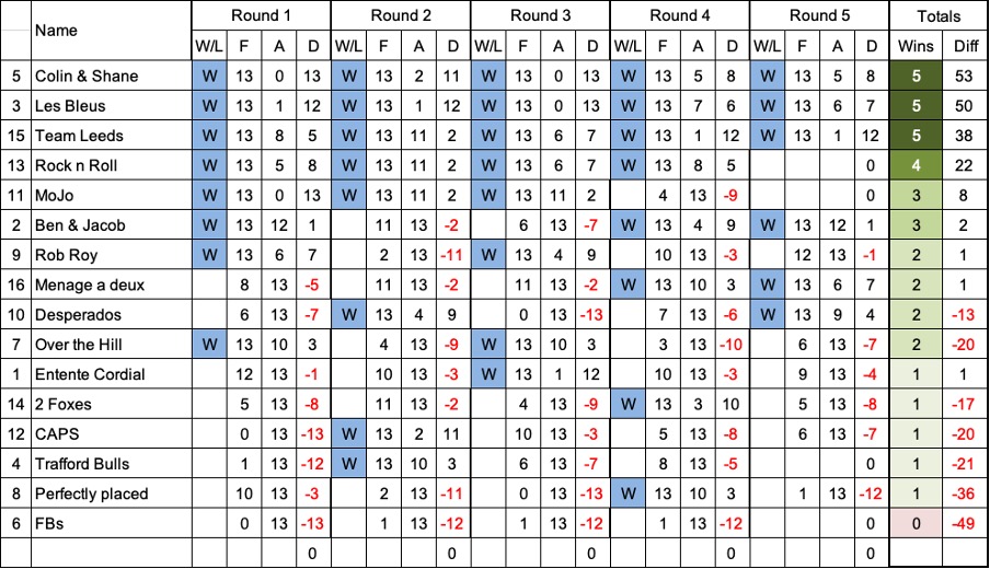 An interesting day. For the first 4 rounds most things went well but because of some slow play in the first round there was a knock on effect and as sunset approached and rain started to fall there were some teams finished and sheltering in the clubhouse but some teams still playing the 4th round. Fortunately this didn’t affect the top 4 positions and teams who still had a game to play but didn’t want to play in the rain and the darkness decided to go home and get warm and dry.