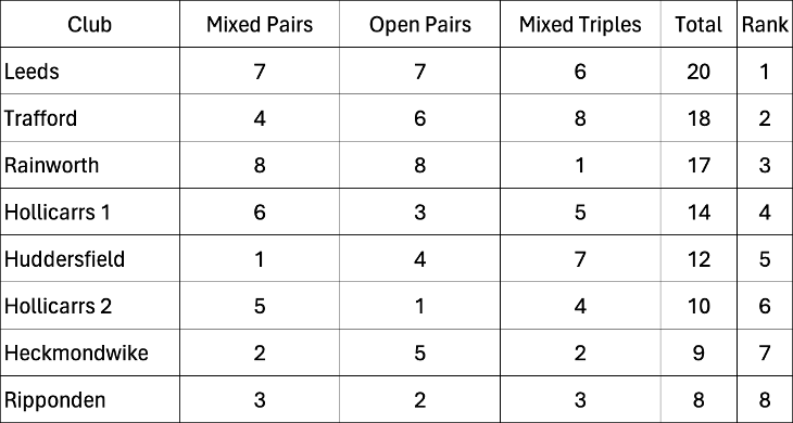 8 clubs provided an Open Pair, a Mixed Pair, and a Mixed Triple in a squad of 7 to play a full-day event, with all teams playing five games. It was a fantastic day of petanque.