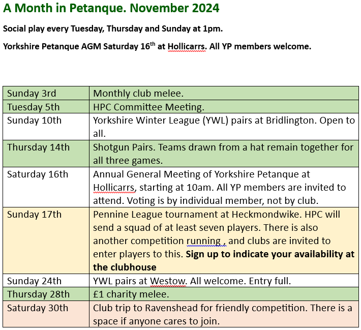 A Month in Petanque Novembers Calendar of Events