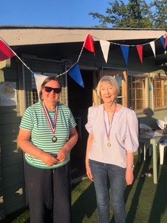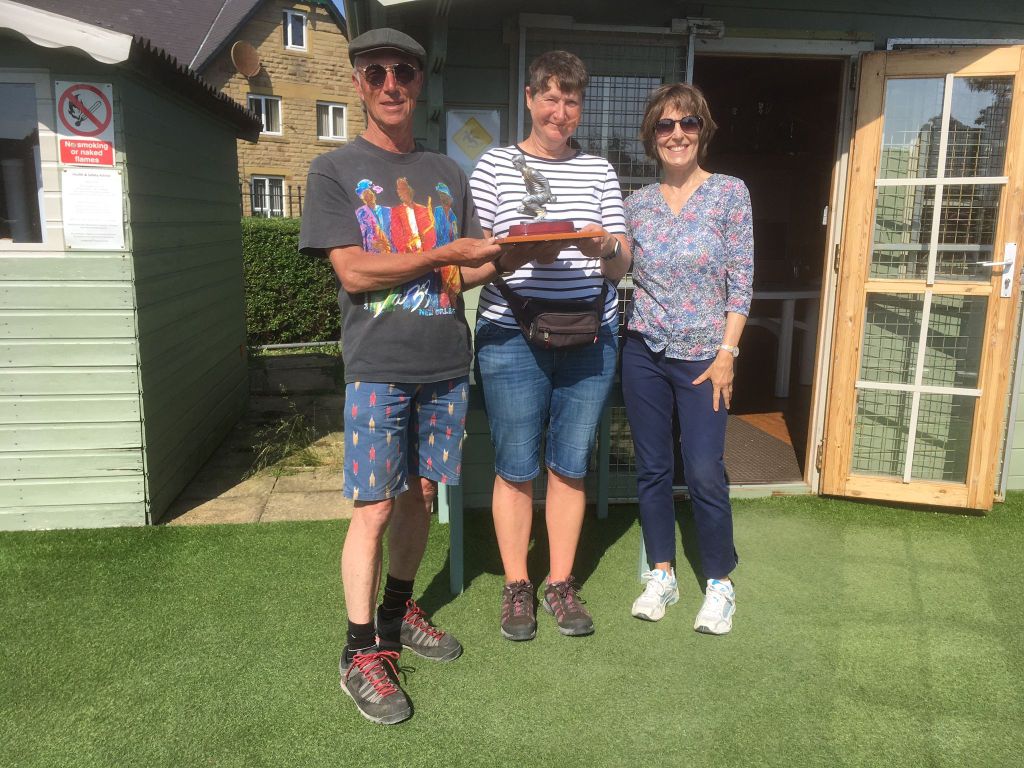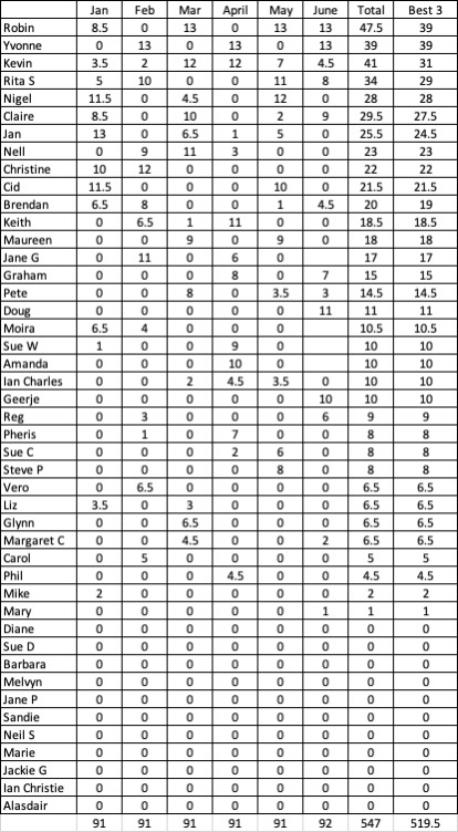 Mathematicians may spot that Robin and Yvonne were both given 13 points in June. It should have been 12.5 but didn’t affect the result. Here’s another picture from 2019 which shows the trophy better and also shows a picture of Richard who is no longer with us but is greatly missed.