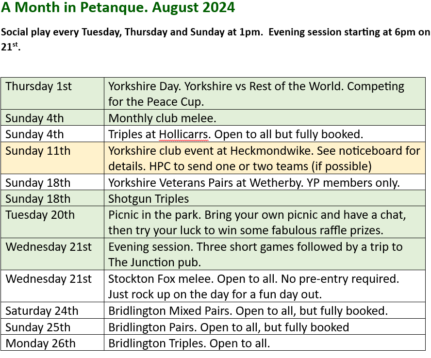 Excellent day at Huddersfield Petanque Club for the Yorkshire Day, Peace Cup. Thanks to all 30 participants representing Yorkshire & the Rest of The World.